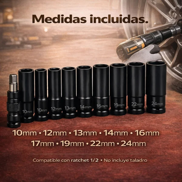 Sí, incluye medidas métricas comunes de 10 mm a 24 mm.