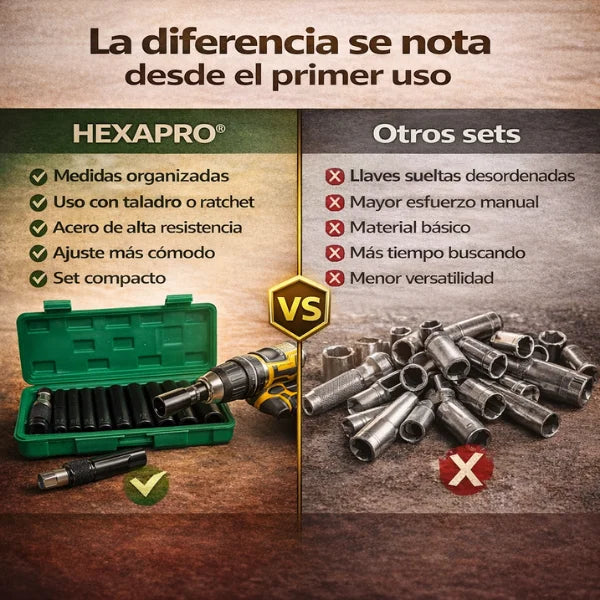 No. El SET HEXAPRO® incluye llaves y adaptador; el taladro se utiliza por separado.